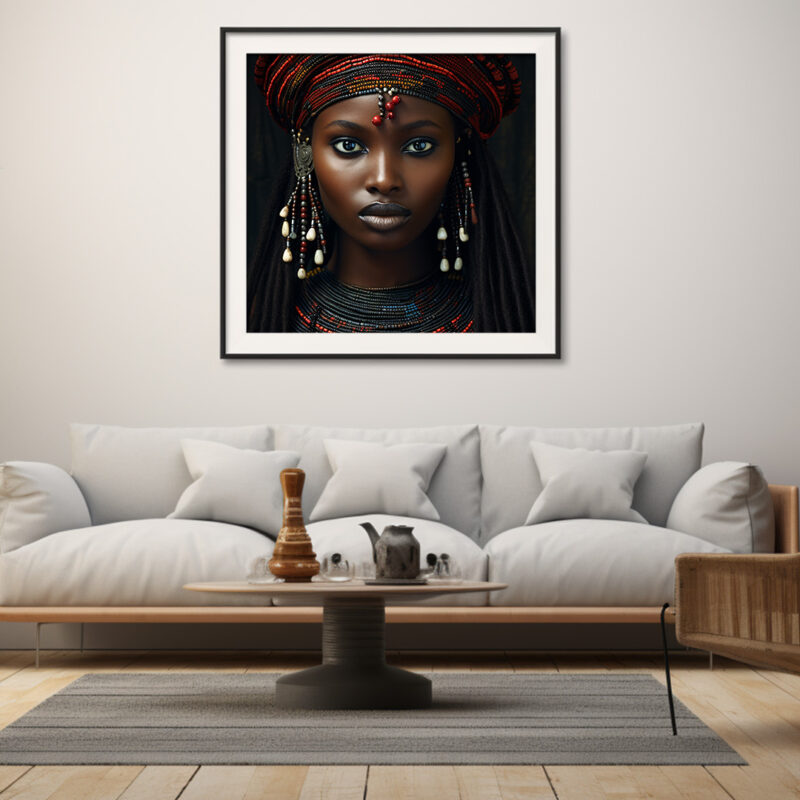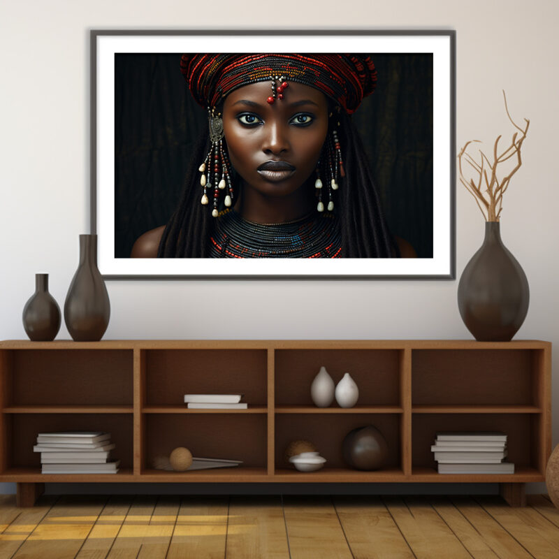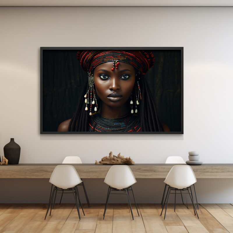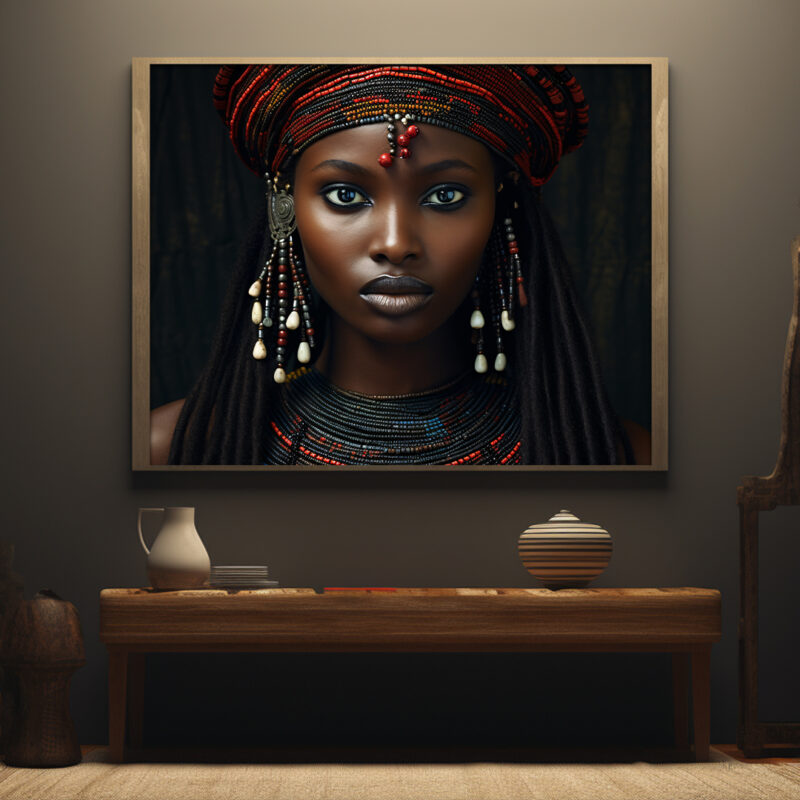 This digital art piece is perfect for those who want to add a touch of African elegance to their digital spaces. Whether it’s for a website, a blog, or a social media profile, this image is sure to make a statement. It’s a beautiful representation of African culture and heritage, captured in a digital medium.