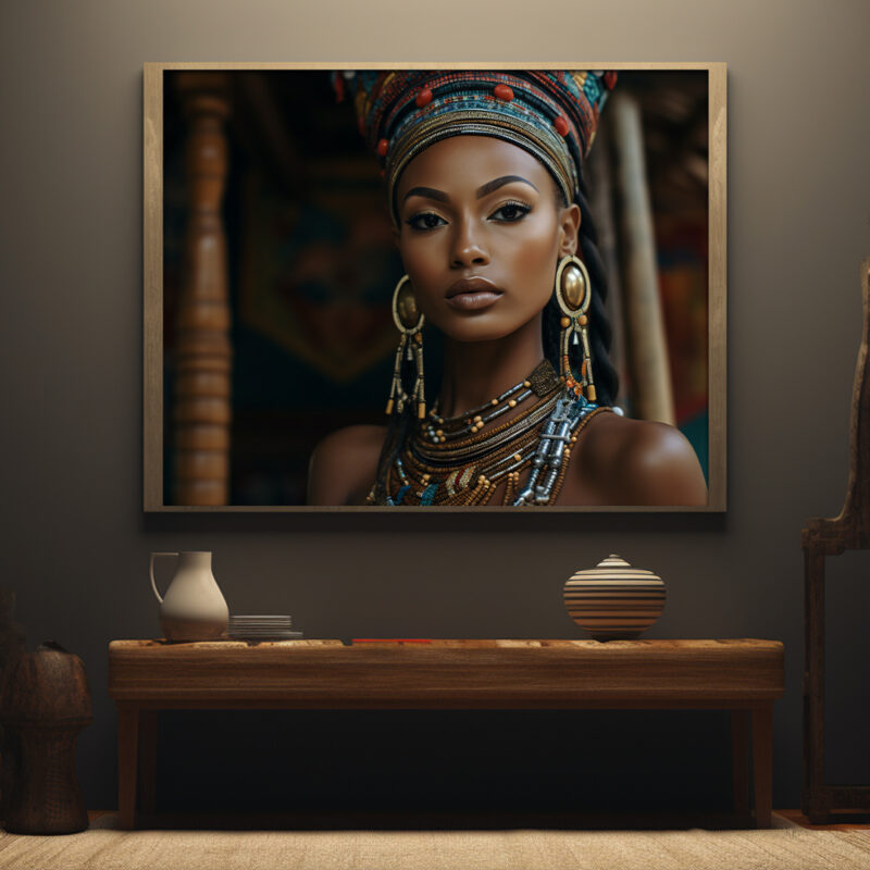 Don’t miss the opportunity to own this beautiful representation of African royalty. Download it now and add a touch of cultural sophistication to your digital collection.