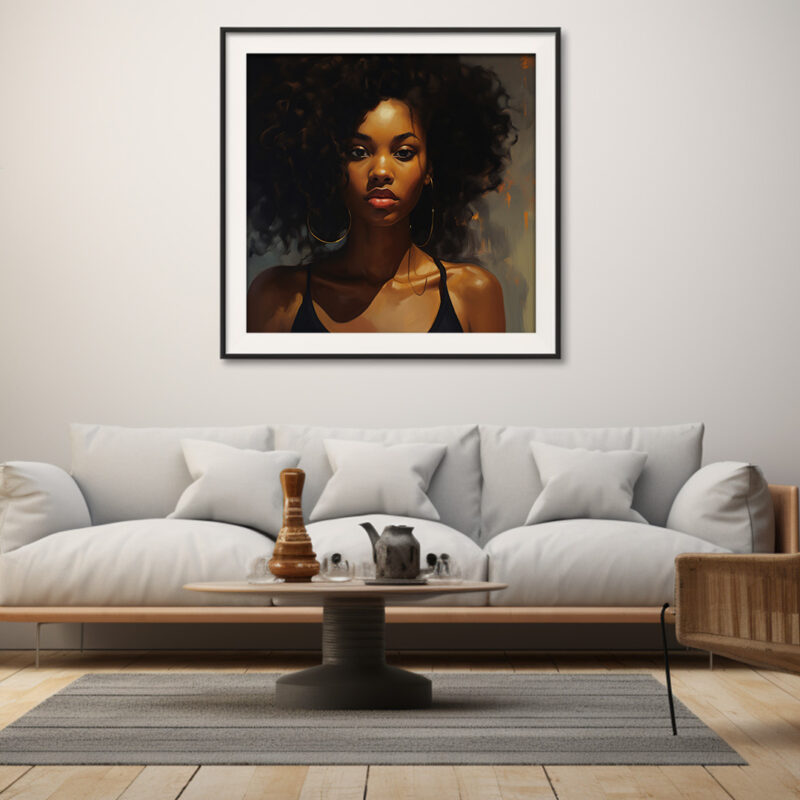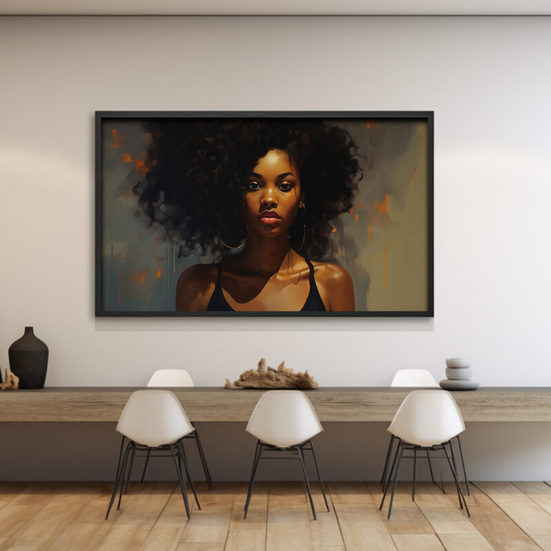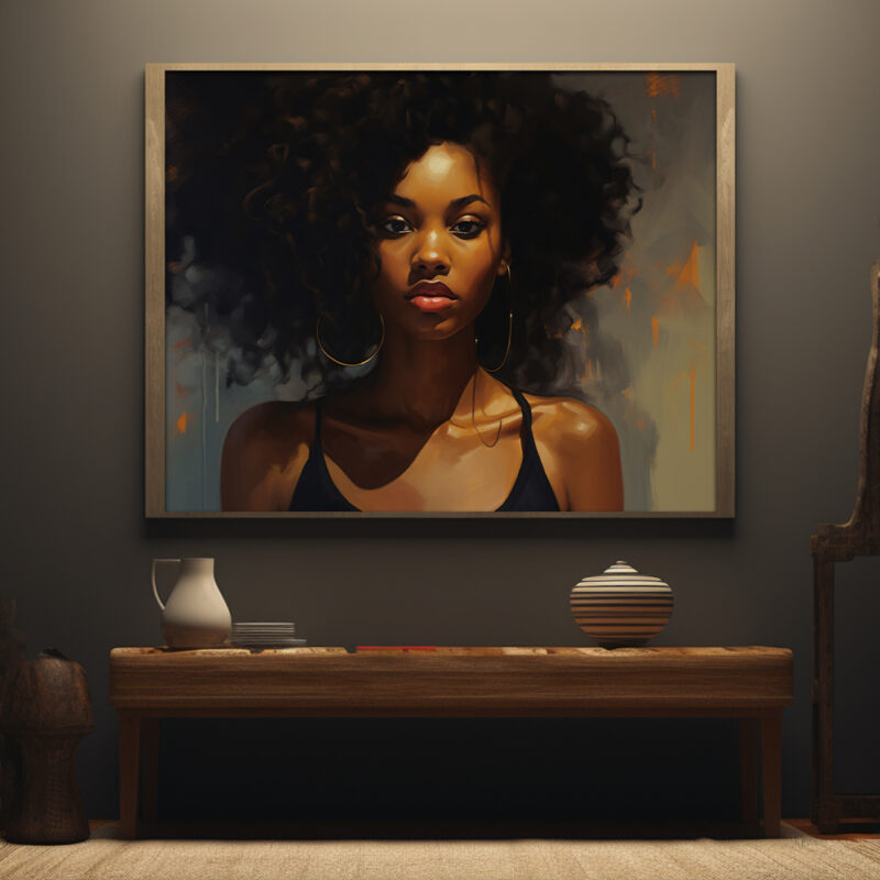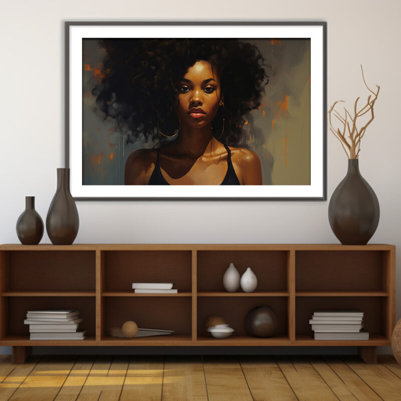 Experience the beauty of digital art with this stunning portrait of a woman with voluminous afro hair. The image captures her elegance and grace, making it a perfect addition to any collection. This digital art print is available for download on our website, offering you the convenience of adding a touch of sophistication to your space without the hassle of physical delivery. Whether you’re looking for a statement piece for your home or office, or a thoughtful gift for a loved one, this digital art print is sure to impress.
