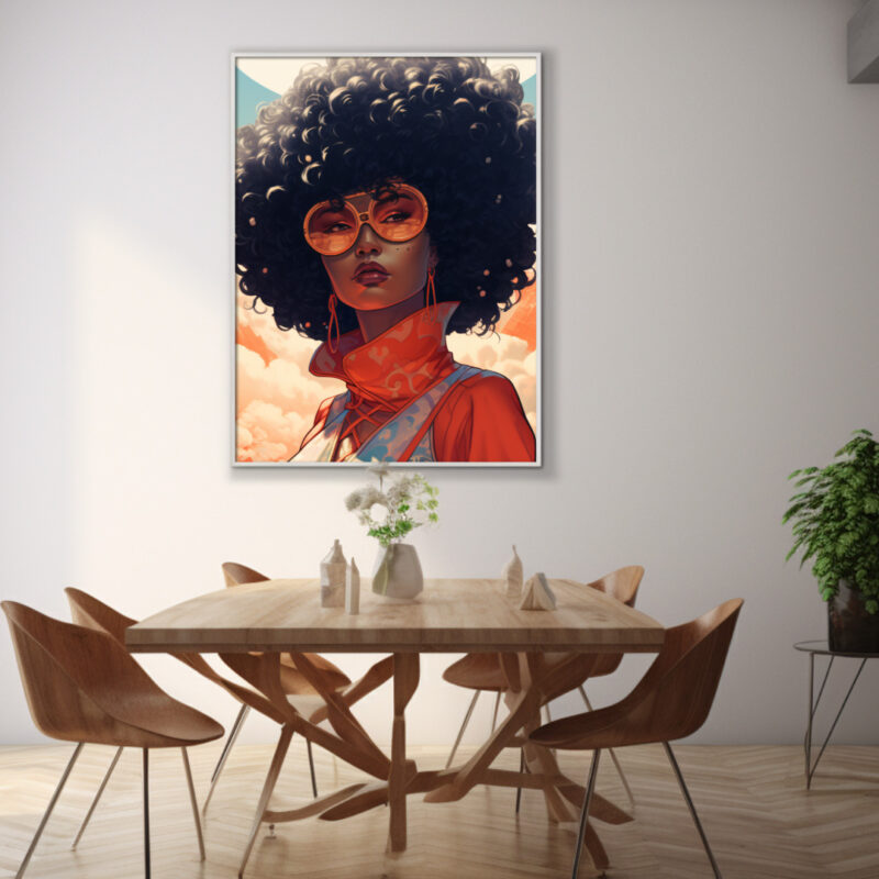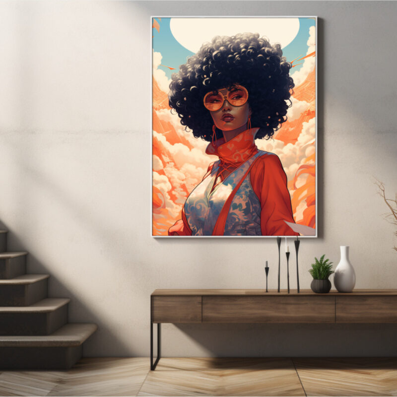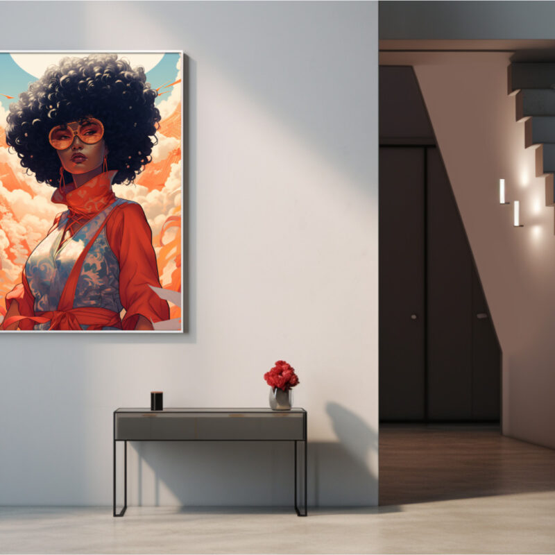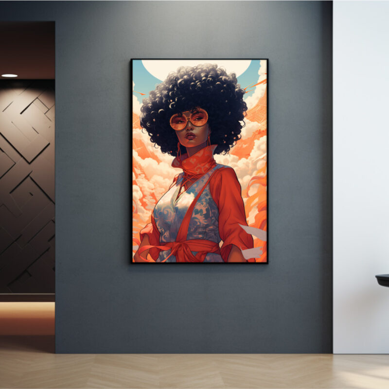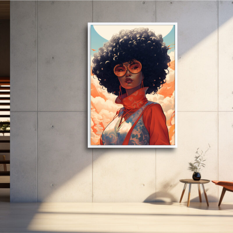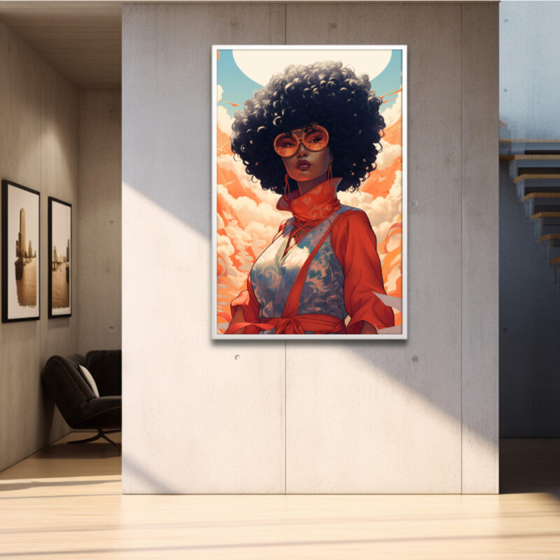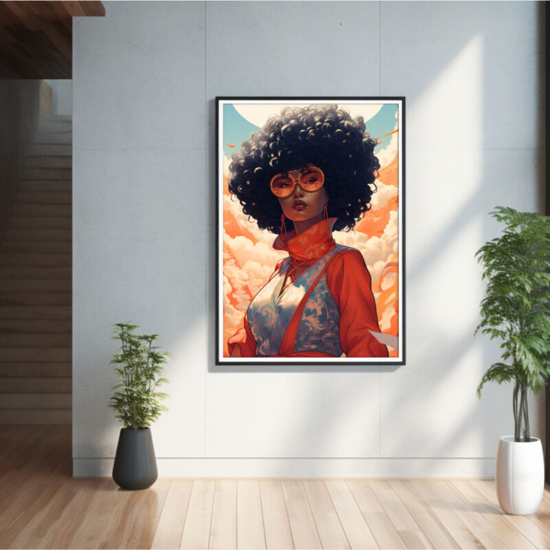 Celebrate imperfect grace. “Flawed Beauty” captures the quiet strength in an afro-crowned muse, rendered in rich afrocentric digital art that honour every texture and freckle.