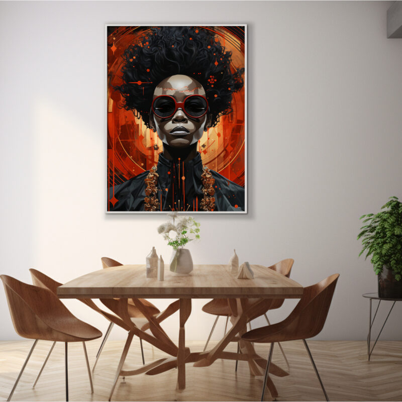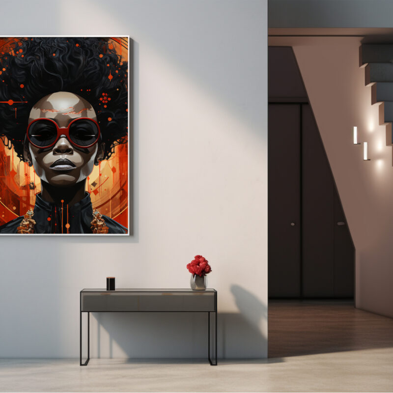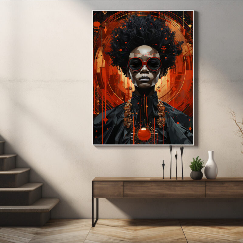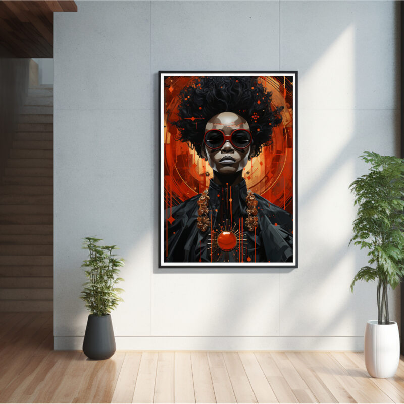 “Nova Monarch” brings a powerful statement to any space, marrying painterly brushwork with Afrofuturist flair. Perfect for patrons of modern art, gallery walls, and digital signage.