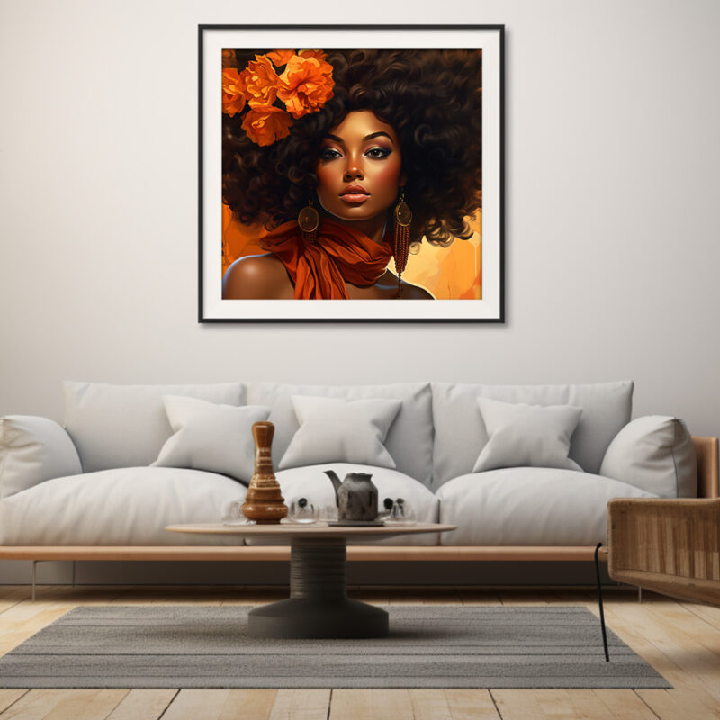 Stylish Afro-Inspired Orange Flower and Bold Colors – Digital Download Art Print